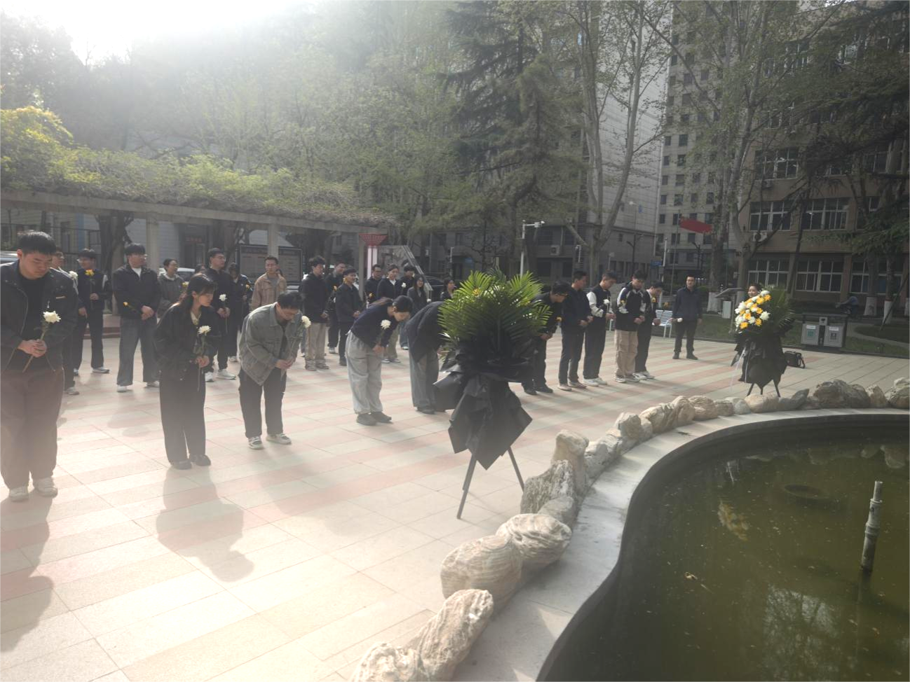 敬獻(xiàn)鮮花寄深情,鞠躬行禮敬忠魂