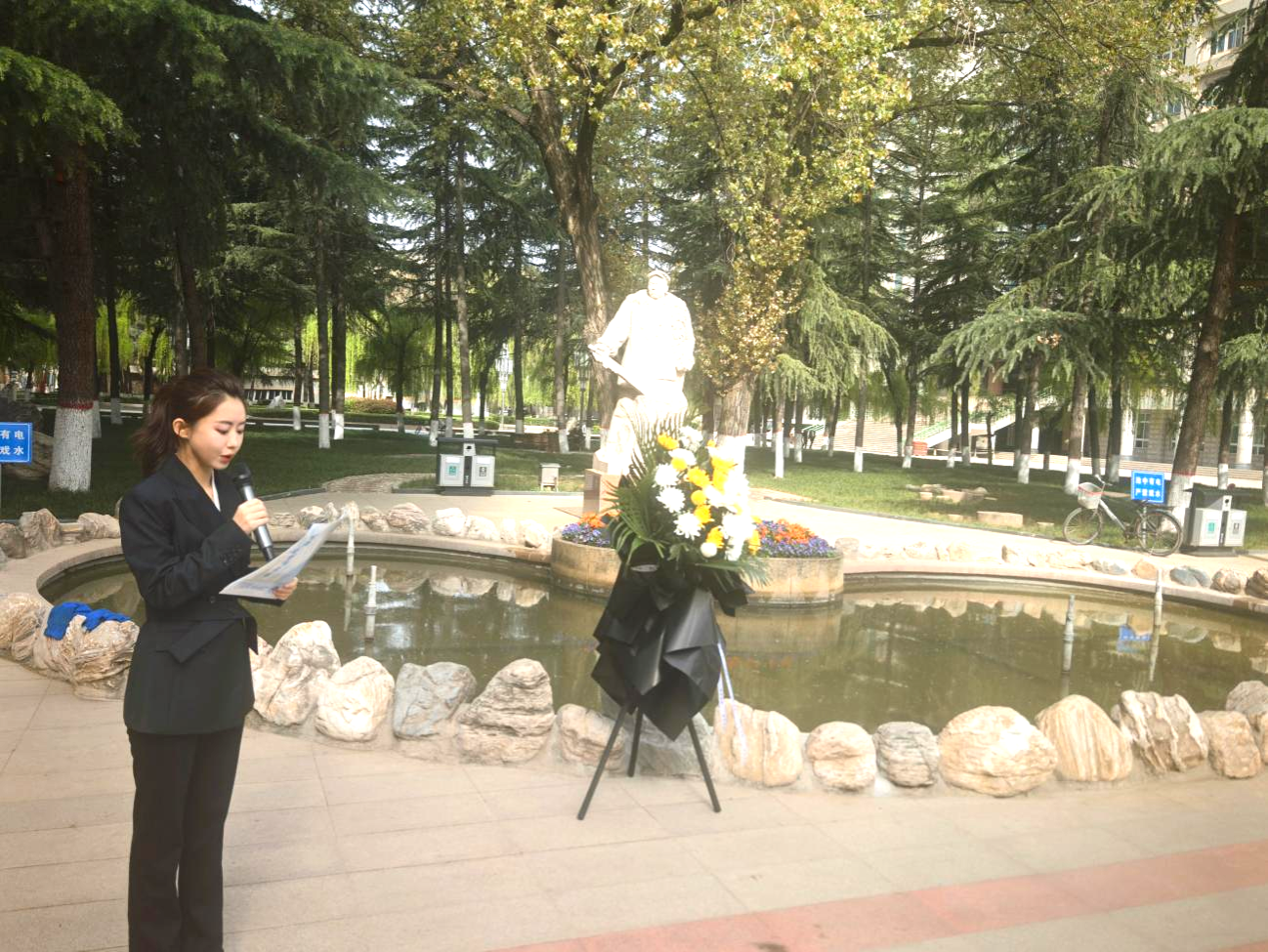 研究生代表手持工具,認(rèn)真擦拭鐵人雕像、細(xì)致清掃廣場環(huán)境,以樸實(shí)行動緬懷先輩、寄托哀思,讓鐵人雕像在陽光下更顯莊嚴(yán),讓鐵人精神在實(shí)踐中得以傳承。隨后,全體師生依次獻(xiàn)上鮮花,深切緬懷王進(jìn)喜先生為國家石油事業(yè)作出的卓越貢獻(xiàn),致敬老一輩石油人艱苦奮斗、無私奉獻(xiàn)的崇高品格。