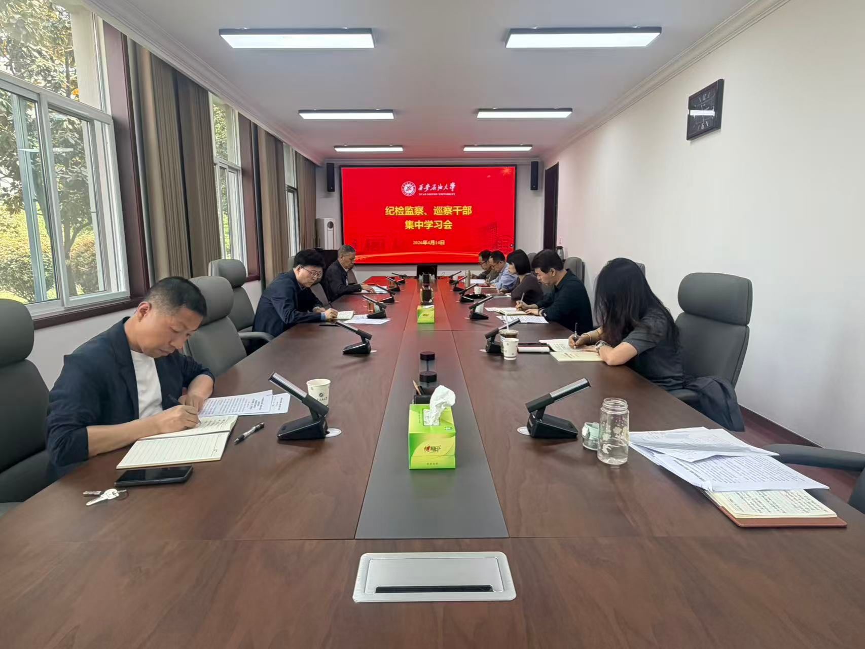 414日下午,紀檢巡察干部2026年第5次集中學習會在鄠邑校區(qū)辦公樓第五會議室召開。校黨委副書記、紀委書記、監(jiān)察專員王輝強主持學習會。紀檢監(jiān)察機構(gòu)、黨委巡察工作辦公室全體干部參加會議。