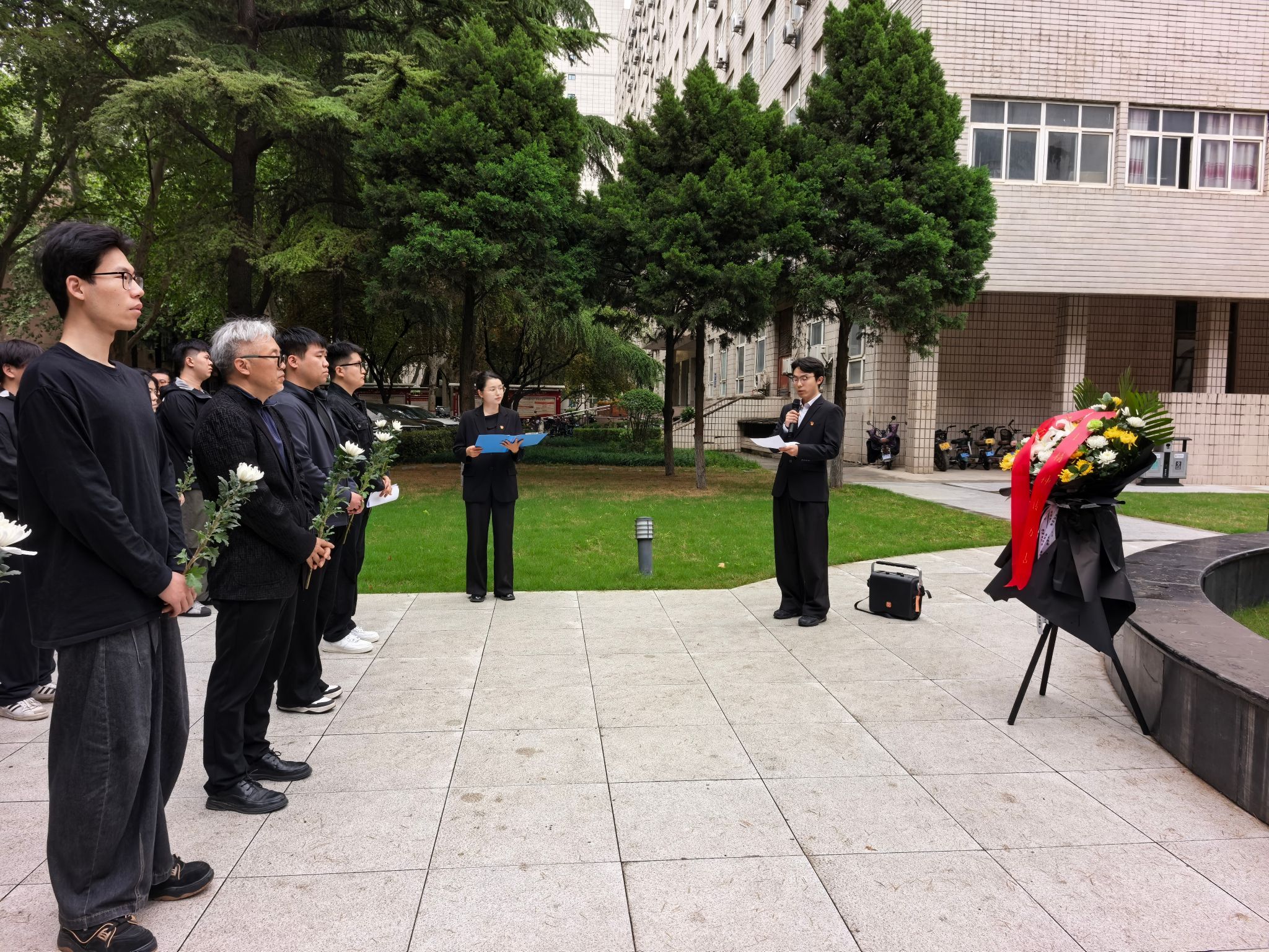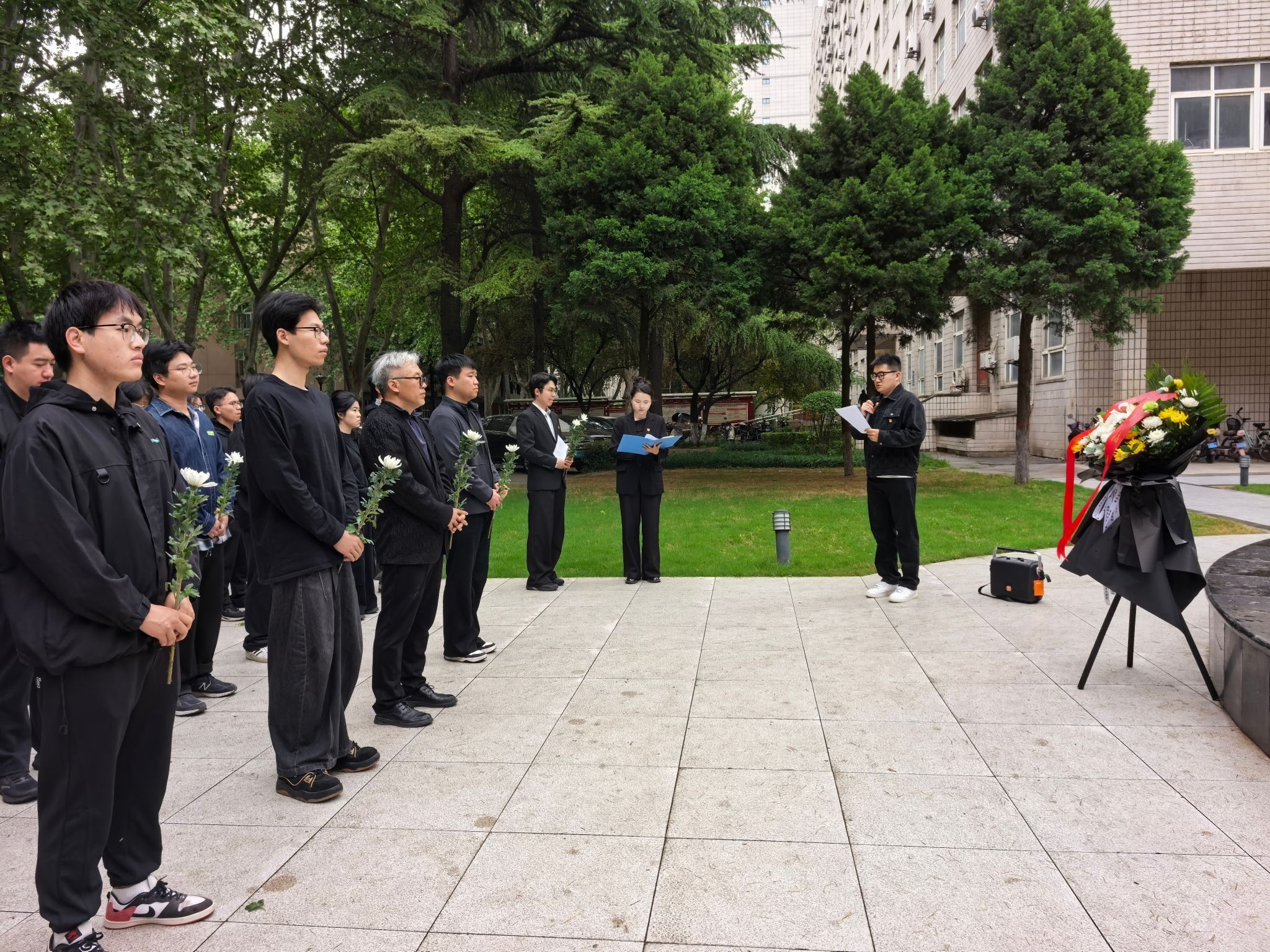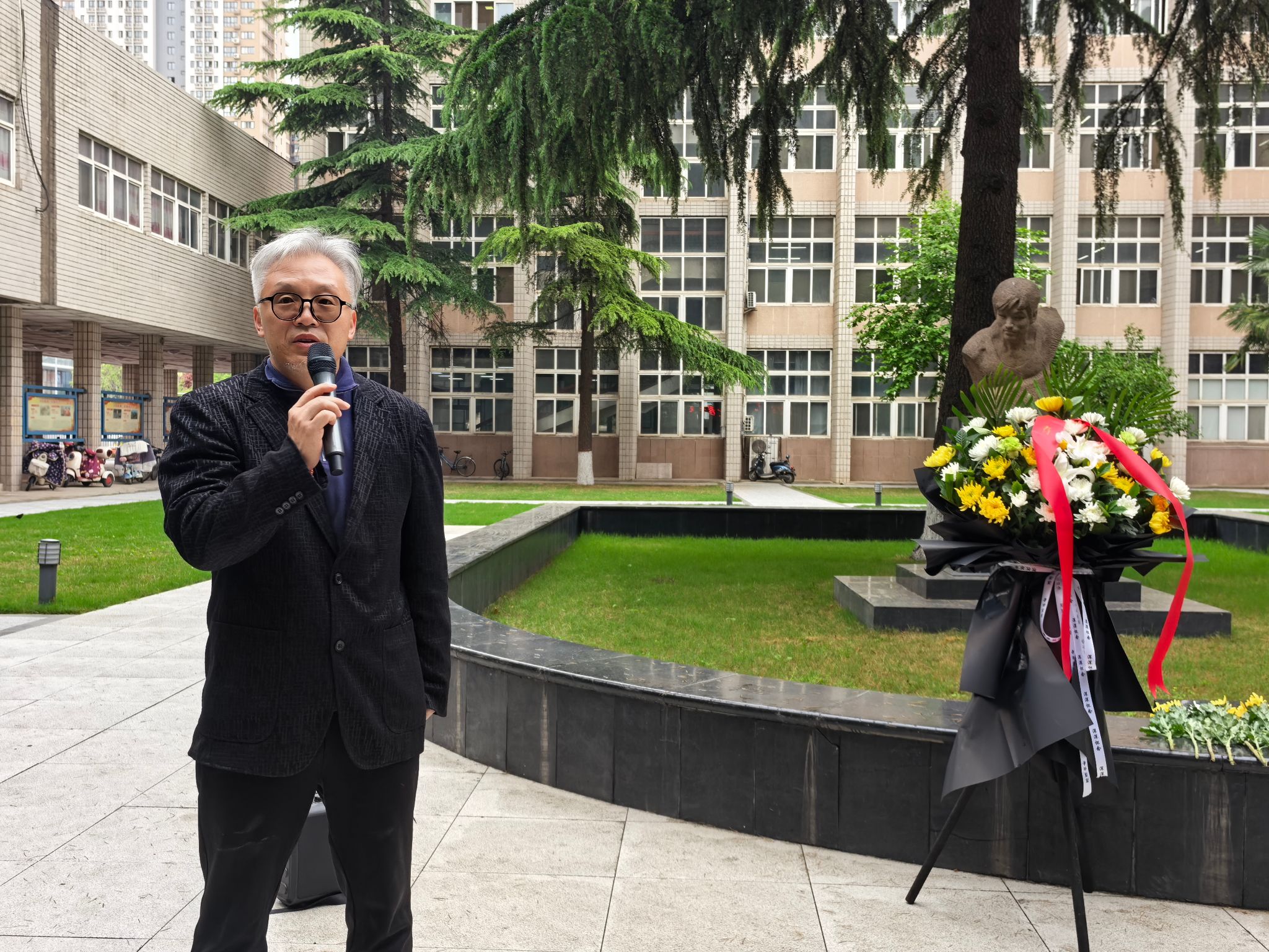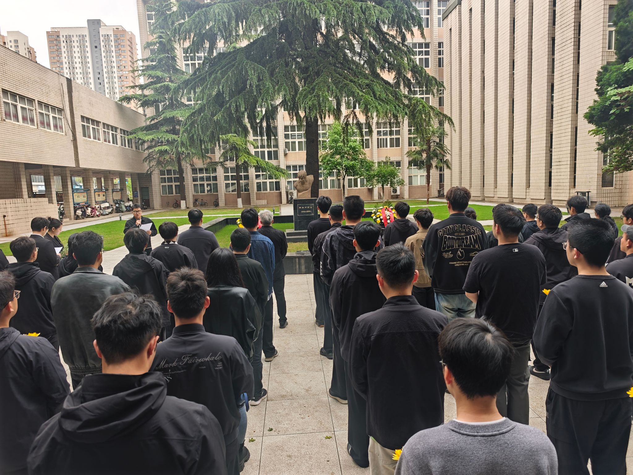 緬懷儀式環節,全體師生懷著無比崇敬的心情,瞻仰唐春雨烈士塑像,全場肅立,默哀一分鐘,以此寄托對烈士的深切緬懷與崇高敬意,感受英烈生前堅毅果敢的精神風貌。默哀結束后,全體師生依次向唐春雨烈士塑像敬獻鮮花,并行三鞠躬禮,用最樸素的方式表達對英烈的緬懷與敬仰,告慰烈士忠魂。