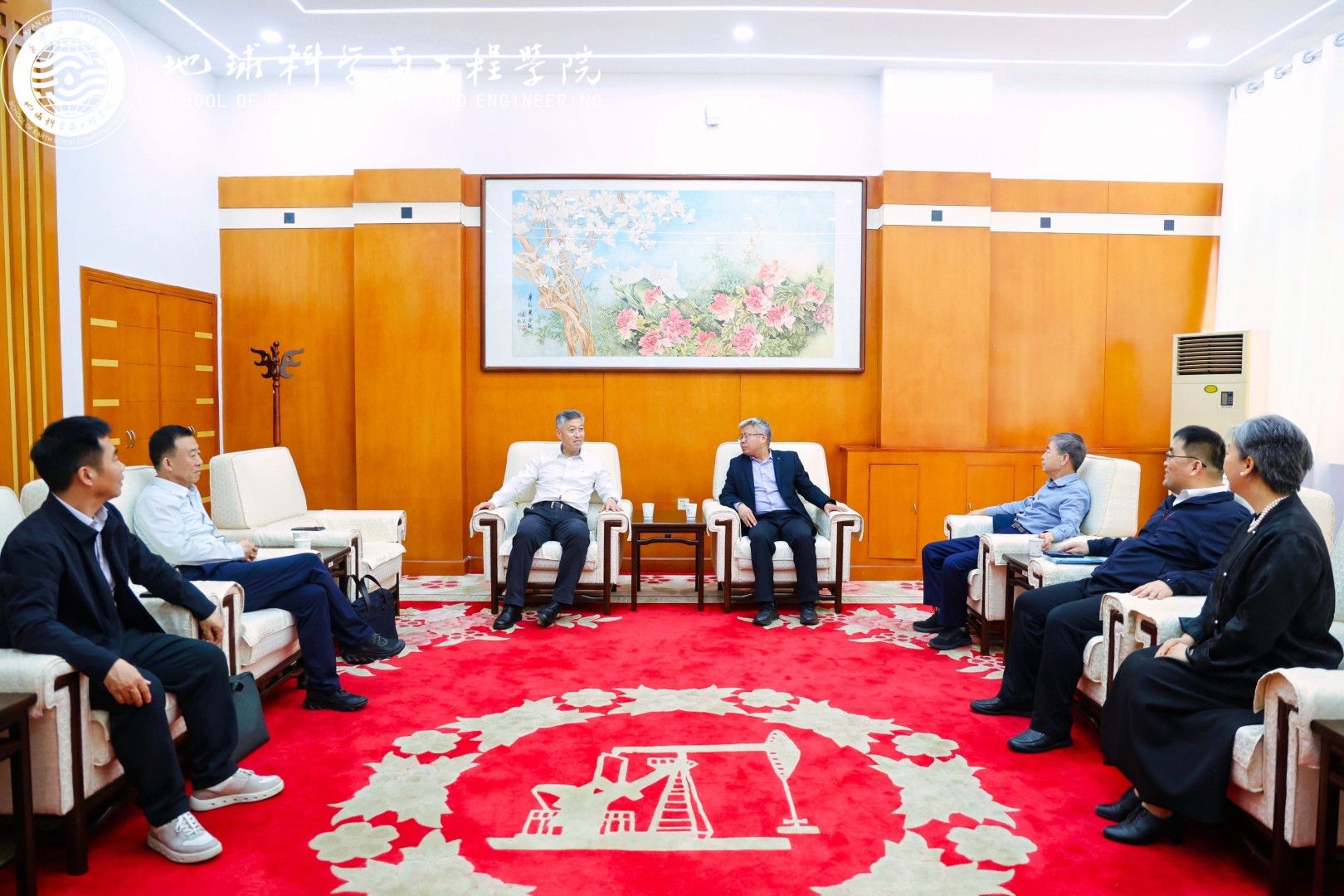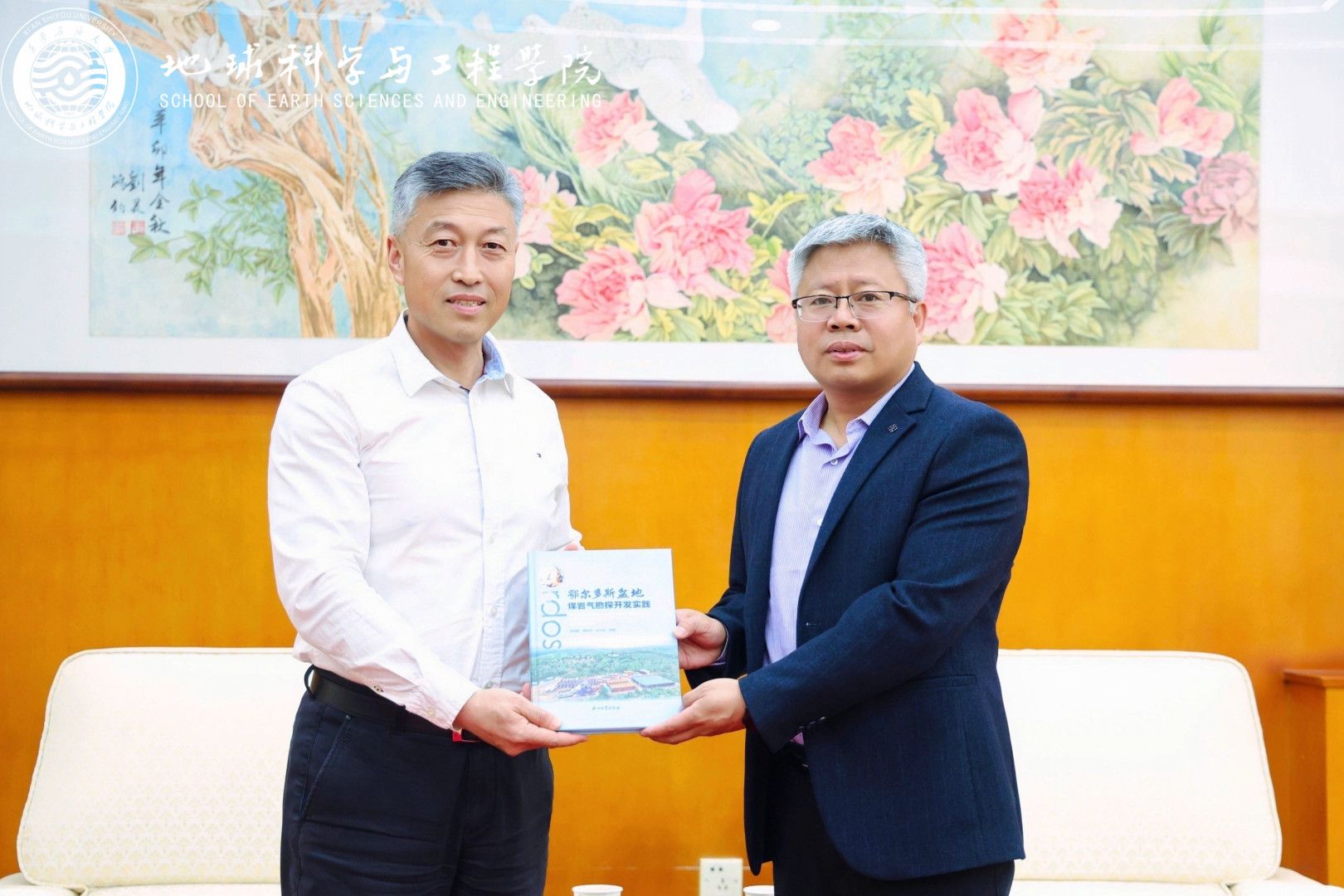 會前,張驍勇會見了侯雨庭一行,雙方圍繞深化產教融合、推進聯合攻關等進行了交流。侯雨庭向學校贈送了所著《鄂爾多斯盆地煤巖氣勘探開發實踐》一書。地球科學與工程學院陪同會見。