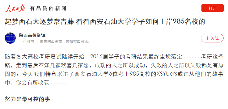 經驗總結:這次難忘的復試經歷讓我收獲了很多,也反思了很多。在我看來,能夠支撐我走到最后的優勢是相比常人更為豐富的實踐經驗:大一到大三這幾年,在黨委宣傳部新媒體中心為官微撰寫推文的經歷讓我熟練掌握了新媒體公眾號的運營技能。得益于官微的平臺之大,我還有幸參加了陜西省省級的新媒體沙龍交流會,進一步學習到了高校自媒體的運營策略,這也直接助推了我的b站影視頻道“-Funtime-”的誕生,讓我對媒體的運營有了更加深切的體驗。另外,大三下半學期我開始了在“騰訊大秦網”為期兩個月的實習,為“吃貨在西安”、“西安種草機”撰寫美食、旅游類稿件。這所有的經歷都讓我對新聞學的實踐更加得心應手,同時也產生了更加深度的熱愛。
