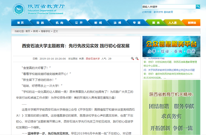 【省教育廳】西安石油大學(xué)主題教育:先行先改見實(shí)效 踐行初心促發(fā)展