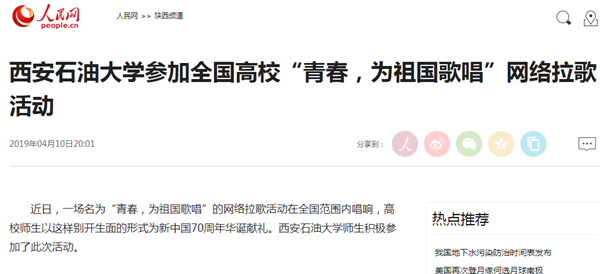 近日,一場名為“青春,為祖國歌唱”的網(wǎng)絡(luò)拉歌活動在全國范圍內(nèi)唱響,高校師生以這樣別開生面的形式為新中國70周年華誕獻禮。西安石油大學師生積極參加了此次活動。