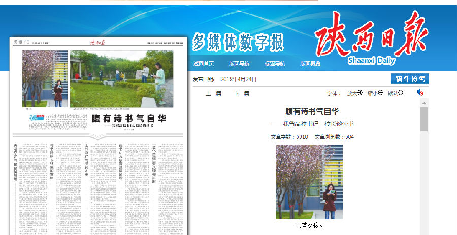 4月24日,《陜西日報(bào)》第10版“閱讀”專版刊發(fā)了兩張我校大學(xué)生孜孜不倦、專心讀書的照片。多年來,我校大力開展“書香校園”建設(shè)系列活動(dòng),同學(xué)們自覺將讀書作為一種生活方式和精神追求,用讀書充實(shí)人生,讓書香飄溢校園。