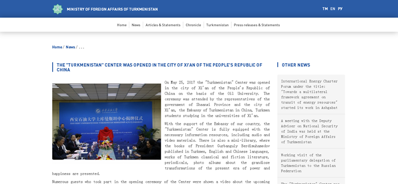 日前,我校成立了土庫曼斯坦中心,土庫曼斯坦等國外官方媒體紛紛對(duì)此事進(jìn)行了報(bào)道。