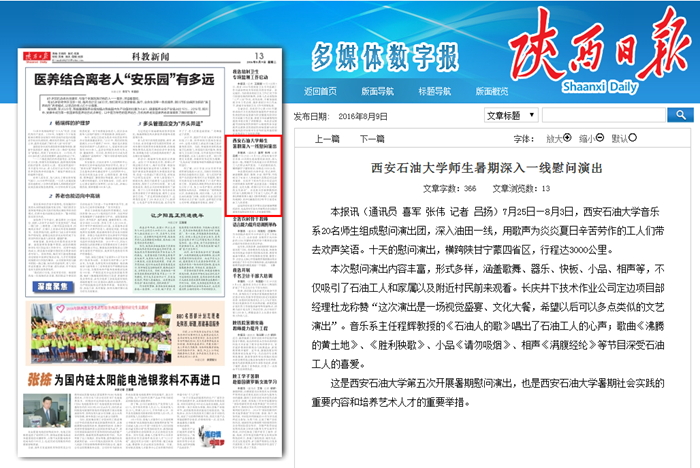 【陜西日報(bào)】西安石油大學(xué)師生暑期深入一線慰問演出