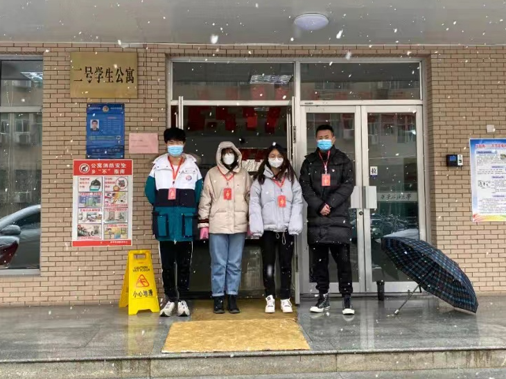 工作中,也有小驚喜。那是2021年的第一場雪,楊寬和其他志愿者早晨六點去西操場參加核酸檢測值守,又緊接著參與宿舍樓、食堂、小吃街值守任務(wù),一直忙到晚上10點鐘,老師們發(fā)現(xiàn)他們還沒吃飯,就趕緊送來了晚飯,楊寬笑著說:“雖然因為站得時間太長導(dǎo)致腿腳麻木,但我感到心里面暖洋洋的,那是我吃過最香的一頓晚餐。”
