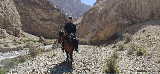 自2019年轉(zhuǎn)改以來,崔帥帥始終堅守在工作崗位上,扎根在帕米爾雪域高原,作為一名漢族民警,為了搞好工作,加強溝通效果,他虛心向牧民群眾學習維吾爾語,向所里的少數(shù)民族民警請教,努力提升少數(shù)民族語言溝通能力。為了解轄區(qū)基本情況,及時把黨的路線、方針、政策和國家法律、法規(guī)傳播到交通不便、消息閉塞的牧民群眾當中,他經(jīng)常到廢寢忘食的地步去轄區(qū)開展法律宣傳,4年里累計行程6000多公里,累計宣傳黨的政策方針1500余次,發(fā)放宣傳單月4000余份,常常從最東邊的牧民家跑到最西頭的牧民家,每次都要和轄區(qū)群眾進行親切交談,詢問近期狀況,給護邊員交代巡邏任務(wù)。在派出所轄區(qū),哪里有條小溪,哪兒有塊什么樣的石頭,他都了如指掌,對于邊境地區(qū)的地形地貌,氣候變化,也如數(shù)家珍。他始終堅信“權(quán)力是人民給我們的,要為人民用好權(quán)”,要始終以樸實之風、坦誠之心去對待轄區(qū)群眾。一身移民藍,一雙黑膠鞋,一年四季徒步在山路上。為了熟悉管區(qū)的每處情況,他經(jīng)常帶著馕和水就踏上了路途,遇到馬和牦牛都難以行走的地方,他就自己背著東西,一步一步走過去。有人和崔帥帥開玩笑說他把邊境線上的石頭都壓碎了。風里來,雨里去,日復(fù)一日地深入邊境一線牧民居住點進行治安調(diào)查,扎實開展“掃黑除惡”“驚雷一號”“我為群眾辦實事”等專項活動,確保轄區(qū)的和諧穩(wěn)定。