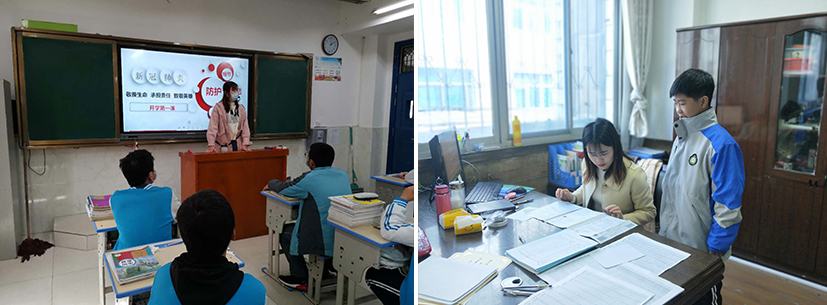在工作期間,多名研支團(tuán)成員還兼任學(xué)校部分科室行政工作。支教團(tuán)成員基于所在服務(wù)學(xué)校的工作安排,充分發(fā)揮自己所學(xué),完成教育教學(xué)任務(wù)和各項(xiàng)行政工作。同時(shí),通過人文關(guān)注、友伴關(guān)懷等方式幫助服務(wù)地學(xué)生樹立成才報(bào)國(guó)的遠(yuǎn)大理想,以人格影響人格、用心靈塑造心靈,踐行研支團(tuán)初心,為服務(wù)地的教育事業(yè)和社會(huì)發(fā)展注入新鮮活力,讓青春之花綻放在祖國(guó)最需要的地方。