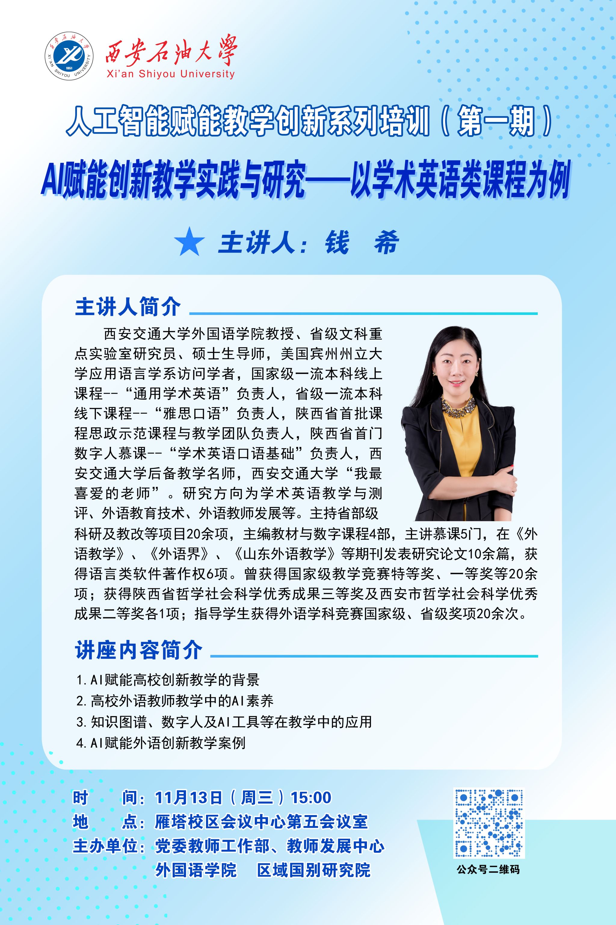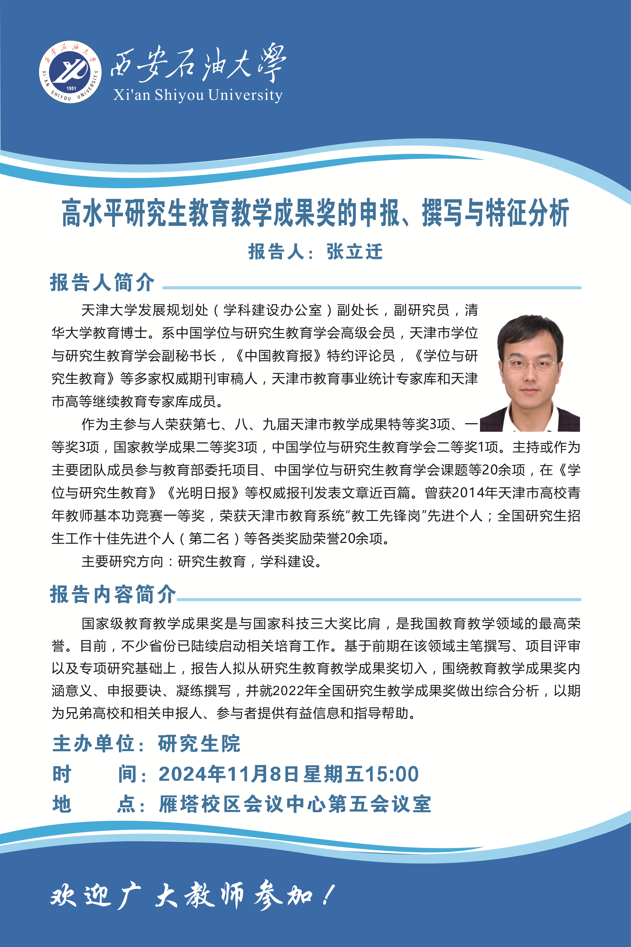 報告地點:鄠邑校區弘石學術報告廳 鄠邑校區弘石學術報告廳
