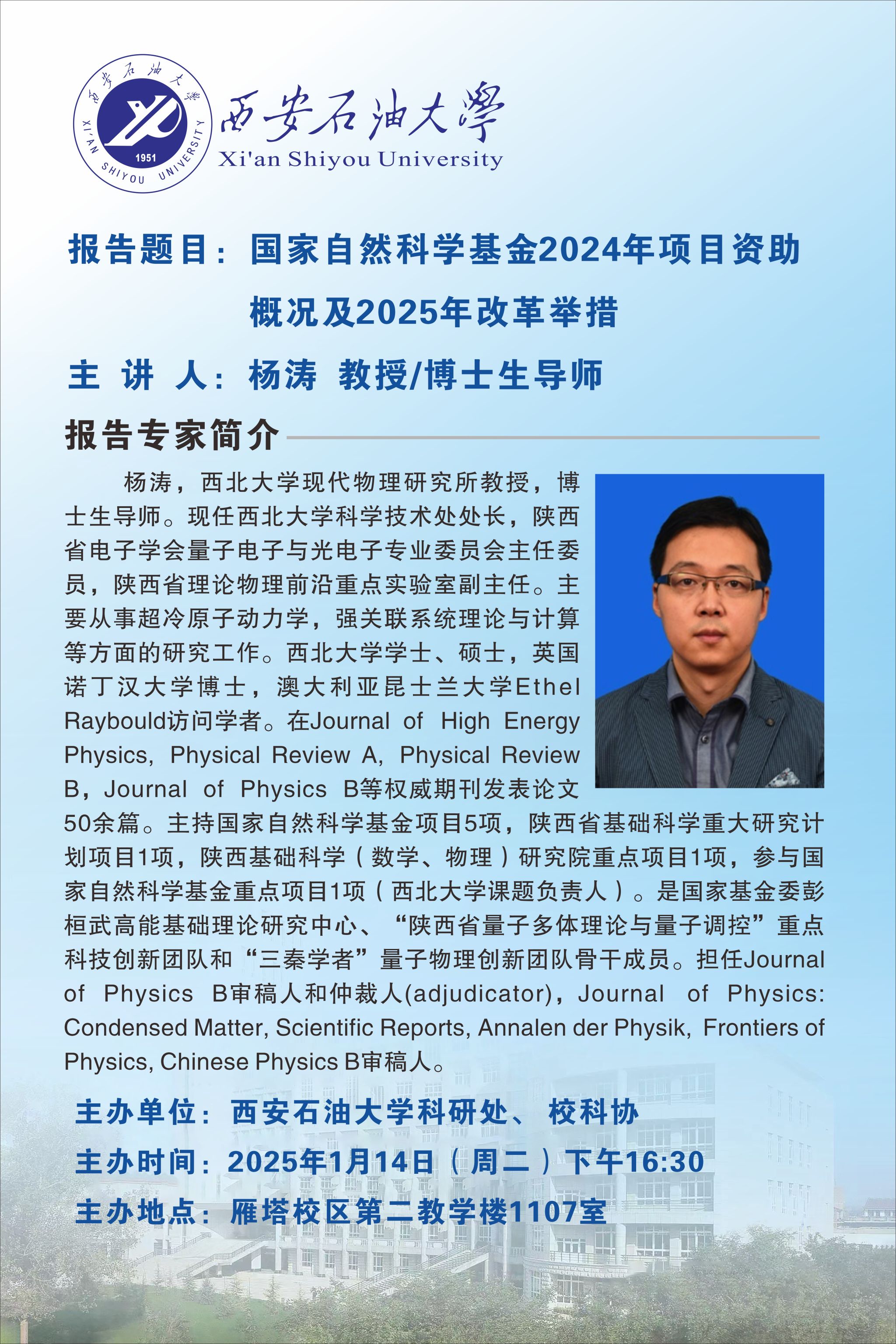 報告地點:雁塔校區學術報告廳