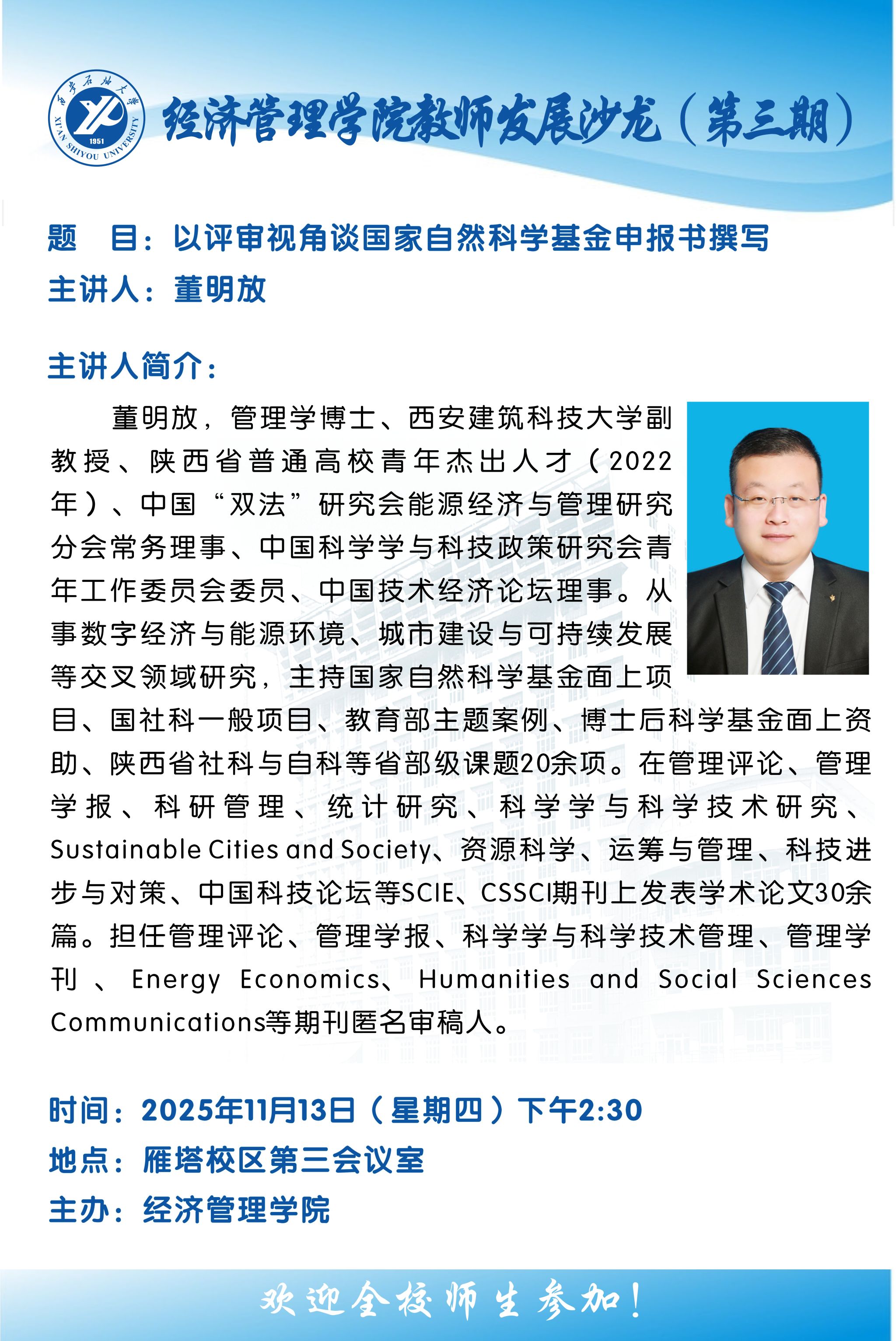 報(bào)告地點(diǎn):雁塔校區(qū)會(huì)議中心第三會(huì)議室