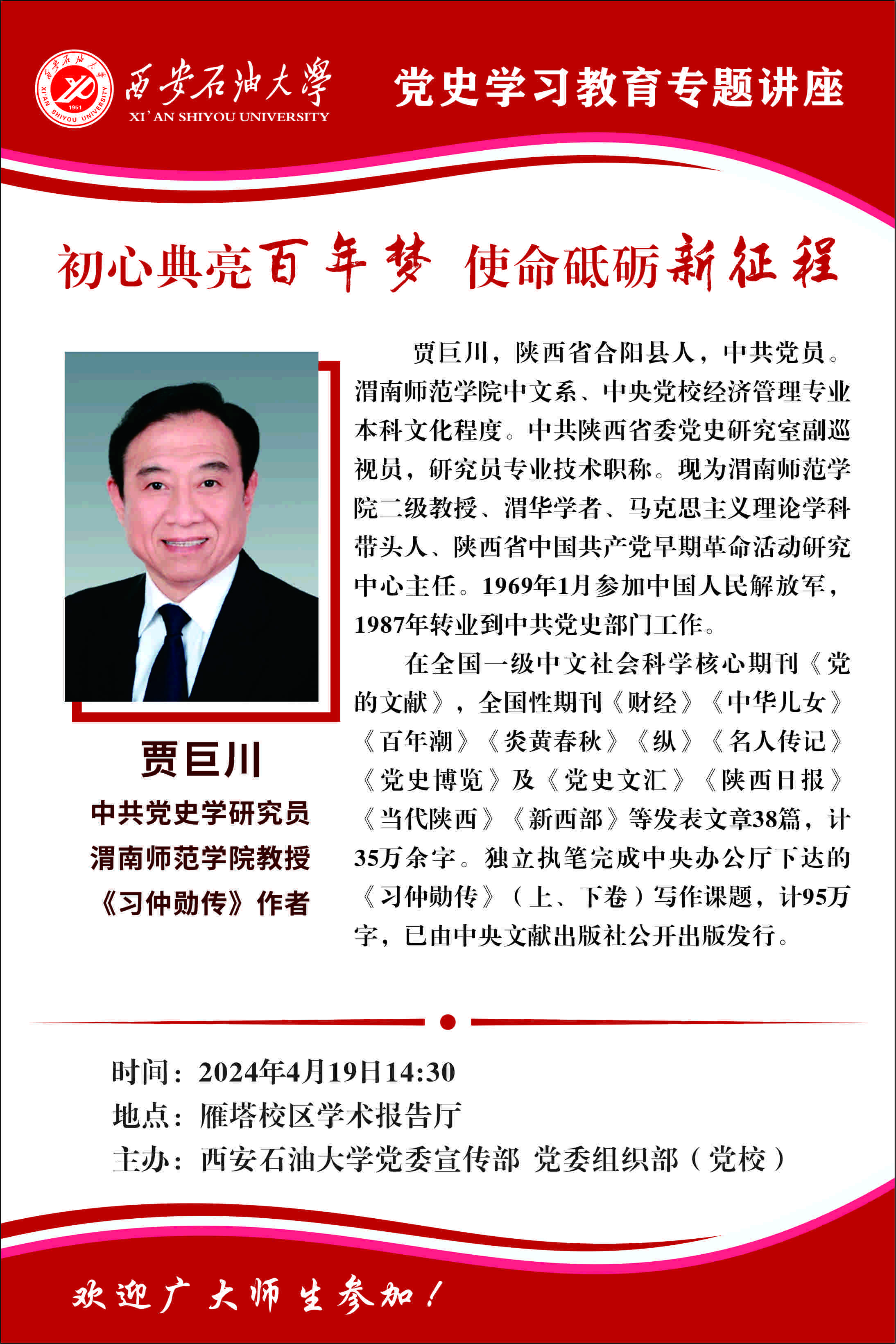 報告地點:鄠邑校區弘石報告廳